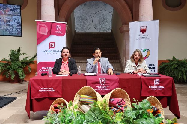 Zacatecas, Zac.- El secretario de Economía, Jorge Miranda Castro, y la Directora General de Fondo Plata Zacatecas, Yesenia Albores Méndez, dieron a conocer los avances del programa de financiamiento que apoya a emprendedores y micro, pequeñas y medianas empresas del estado, con el objetivo de fortalecer su crecimiento, generar empleos y contribuir al desarrollo económico de Zacatecas.