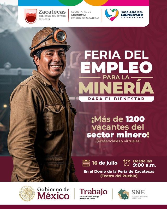 Zacatecas, Zac.- Como parte de la estrategia del Gobierno de Zacatecas para fortalecer la economía local, mejorar las condiciones laborales y generar oportunidades reales para las y los ciudadanos, se anunció la realización de la Feria del Empleo para la Minería, evento en el que participarán más de 30 empresas del sector, que ofrecerán más de mil 200 vacantes para todos los niveles educativos.