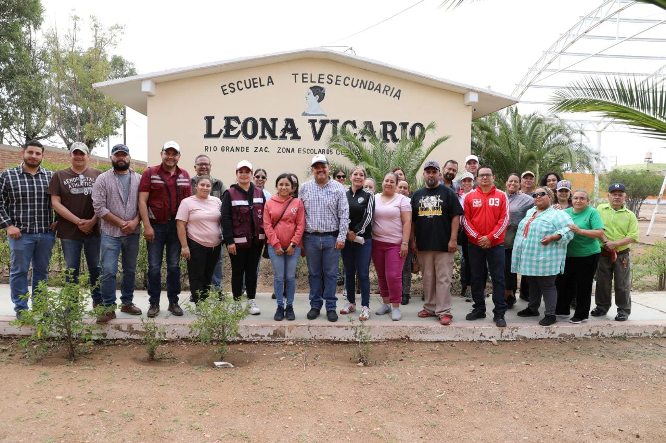 Río Grande, Zac.- El gobernador David Monreal Ávila cumplió su palabra a estudiantes, directivos, docentes y personal administrativo de la Escuela Telesecundaria Leona Vicario, del municipio de Río Grande, de dignificar sus instalaciones con pintura, plantación de especies regionales y limpieza.