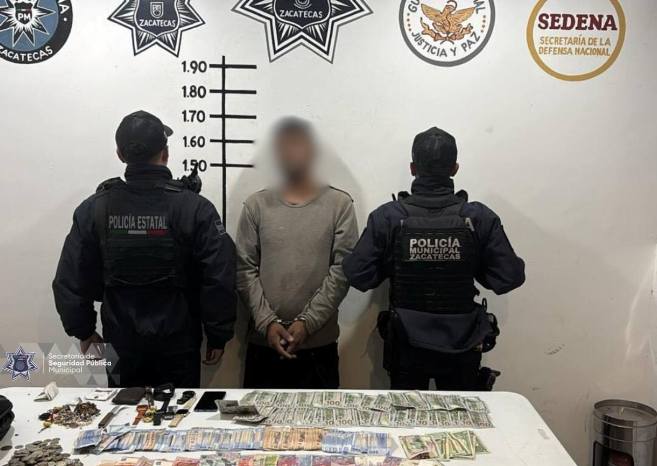 Guadalupe, Zac. Los detuvieron en Cieneguitas con dos réplicas de arma de fuego, una caja de herramienta con seis cámaras de videovigilancia, ponchallantas de varilla y una bicicleta: SSP