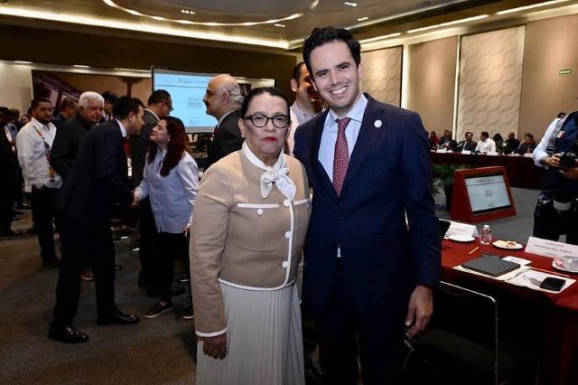 La secretaria de Gobernación, Rosa Icela Rodríguez y el secretario general de Gobierno Rodrigo Reyes Mugüerza